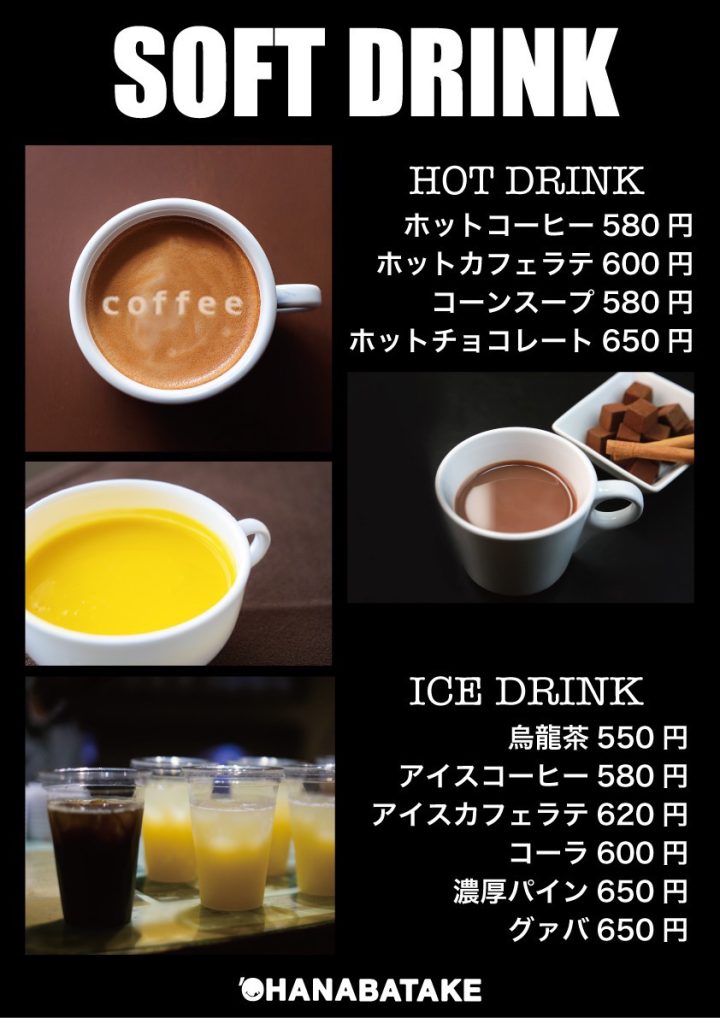 During our dinner hours, you can enjoy warm Japanese dishes, soup pasta, and a dessert.