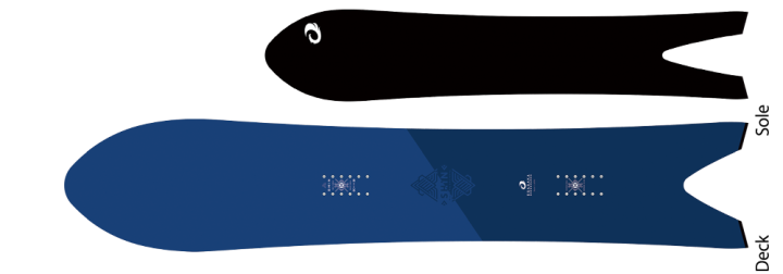 前足に乗り続けるためのワイドなノーズサイドと自在な動きを可能にするナローなピンテール形状を持つニューモデルです。